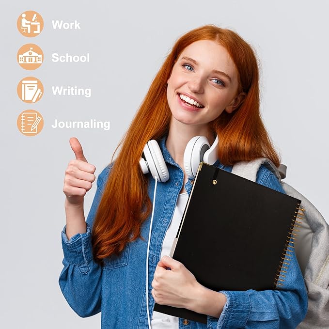 - Strong Spiral Binding& Lay Flat: The hardcover spiral notebook is very sturdy with a pretty golden spiral. Well positioned spiral binding so pages open flat with ease, ensuring that the pages turn smoothly and are organized. Match the gold corner protectors to be attractive as well as practical. Lasting all year around, fantastic work or school supplies!