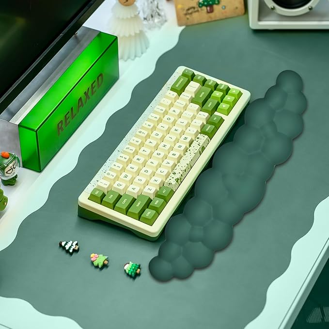 JIKIOU Upgrade Leather Cloud Keyboard Wrist Rest, Cloud Wrist Rest with Non-Slip PU Base, Comfortable Memory Foam Wrist Rest for Computer Laptop Mac Gaming Office and Pain Relief Christmas Wish Gift