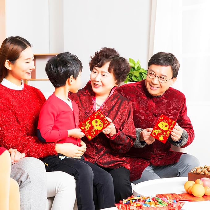 - 【Unique Design】: Each chinese new year red envelopes are printed with cute vivid Snake Zodiac and traditional Chinese characters and mascots expressing blessings and good luck. Classic Chinese Red Design, add strong festive atmosphere to the Chinese New Year. You can express good wishes and good fortune to your friends or relative or family with red envelopes.