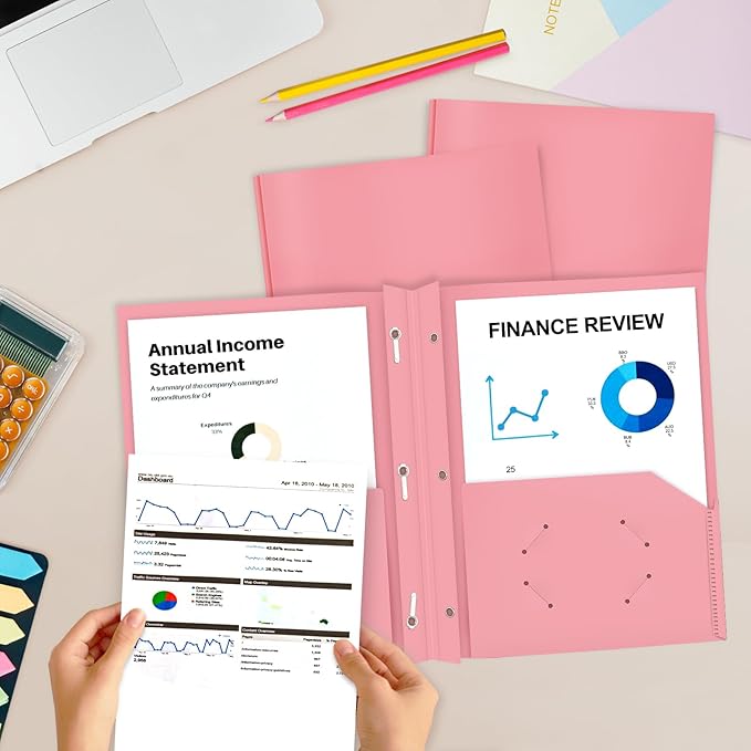 - Pocket folders with robust 3 prong enables punched documented to be secured inside the folder effortlessly and efficiently.