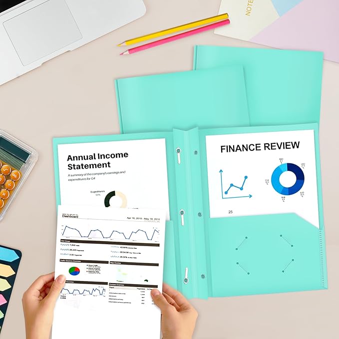 - 2 pockets poly folder fit 8.5 x 11 in paper, 100+ sheet capacity for each pocket, 3 prong fasteners hold 50+ sheet.