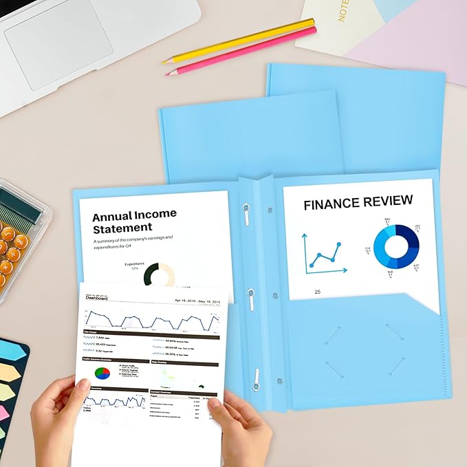 ViVin Heavy Duty 2-Pocket Folders with Brads, Pastel Color, 12-Pack, Durable Plastic Folder with 3-Prong Fasteners, Holds US Letter Size Paper, for School, Home and Office (Light Blue)