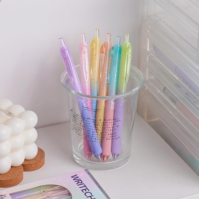 WRITECH Gel Pens Fine Point: 0.7mm Black Ink Retractable 6ct Smooth Writing with Aesthetic Gradient Color Barrel for Journaling Note Taking Silent Click No Smear Nebula Pen Set
