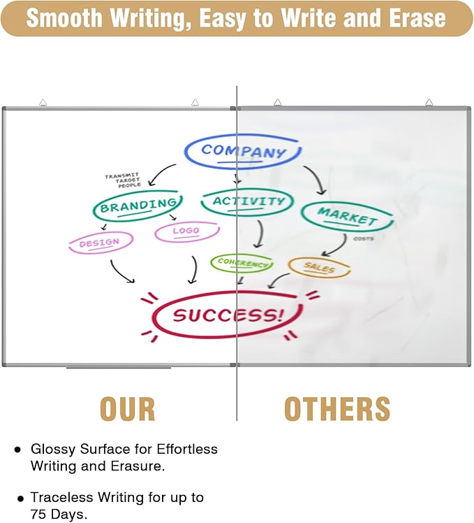 - 🌟✔ 【100% Satisfaction Guarantee】If, for any reason, you're not completely satisfied with our whiteboard, please don't hesitate to reach out. Our dedicated customer service team will work diligently to address any concerns you have with this magnetic whiteboard.