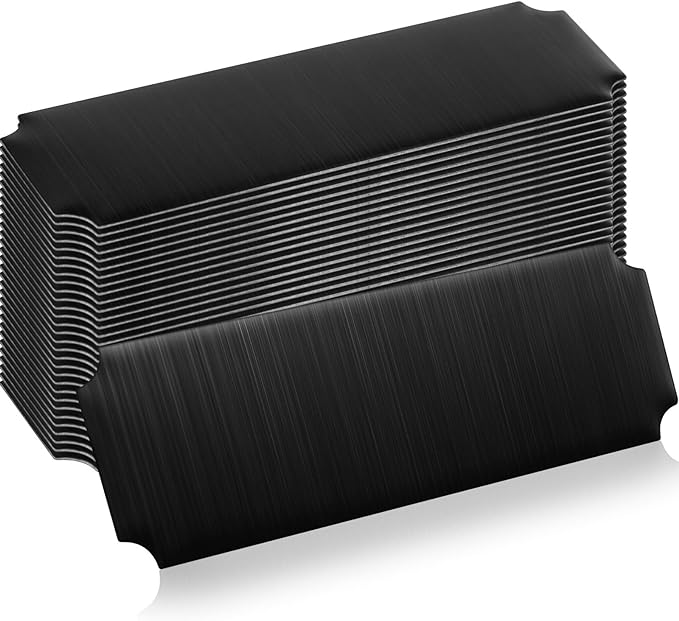 Therwen 30 Pcs Name Plates Laser Engraved Brushed Stainless Steel Plate Personalized Plaque Blank Custom Name Tag Frame Label with Adhesive Backing(Black Notched Corner,1''x 3'')