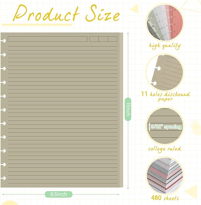- Abundant Value Pack: you will receive 480 sheets of colored discbound refill paper, in 12 different colors, each with dimensions of about 8.5 x 11 inches, suitable for everyday study or work needs, our paper not only adds a pop of color but caters to volume demands effectively