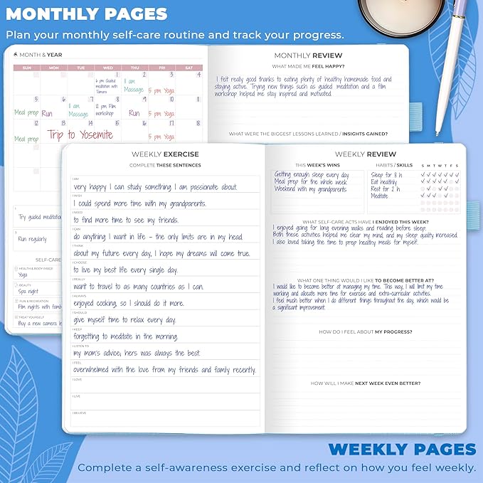 - BUILD A HAPPIER & HEALTHIER MINDSET FOR YEARS TO COME: This self care notebook is filled with prompts, open-ended questions, wellness trackers, and many other tools to help you pinpoint the changes you can make to improve your well-being.