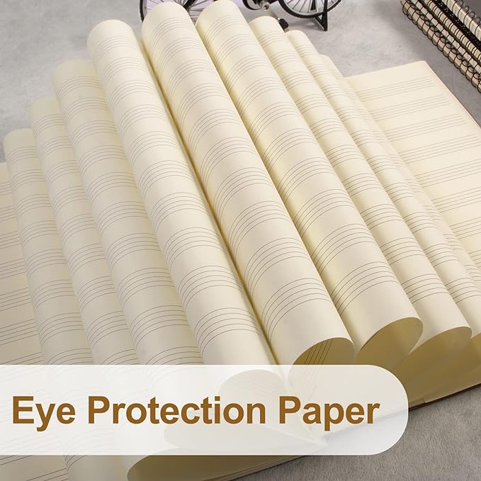 - Coil binding music notebook is more convenient to use; Double-sided writing without ink bleeding; Beige blank sheet for eye protection;
