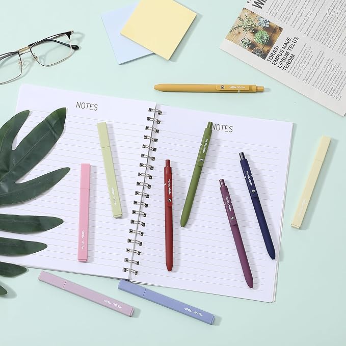 - Package includes 5 highlighters in a delightful assortment of non-neon, soft, and beautiful colors and 5 retractable black gel pens in assorted colors barrels, offering a versatile and coordinated set for all your writing and highlighting needs.
