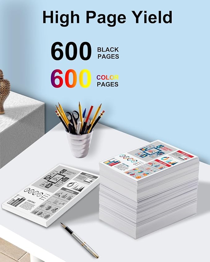- Page Yield: up to 600 pages per black cartridge, up to 600 pages per color ink cartridge