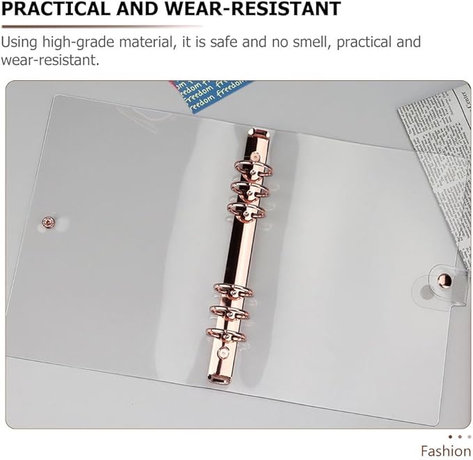 LALAFINA 3pcs Rose Gold Hand Book 6- Ring Binder Covers A5 Transparent Binder Cover Binder Cover Snap Button Clear Journal Binder Cover A5 Binders Students Supplies The Album Loose Leaf PVC