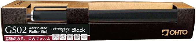 OHTO GS02 Roller Gel Pen, Retractable Needle Tip 0.5mm Fine Point, Black Barrel, Ultra-Quick Drying Black Gel Ink Pen, All-Metal Hybrid Body, GS02-G5-BK