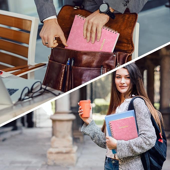 - 【Hardcover Spiral Notebook】: Can be used as a business notebook.With sturdy double spiral binding, it can be folded freely 360° without crease, also convenient for you to tear the pages. Also includes 160 pages of high quality interior paper, scratch pad, and line spacing of about 7mm, which meets most writing habits.