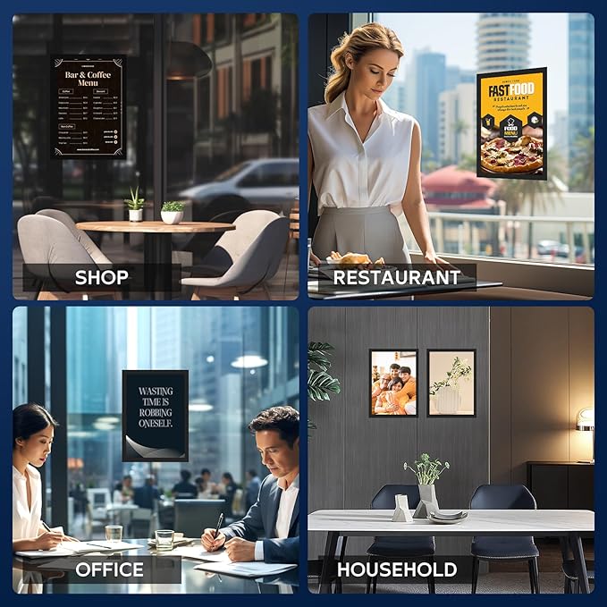 - 💡Versatile Frame:Home Walls and Refrigerators: Children's Artwork, Menu Plans, School Schedules, Schools, Offices: Stick Important Messages on Doors, Walls, Windows, Store or Supermarket Windows: Stick on Transparent Showcases, Display New Arrivals or Specials, etc.