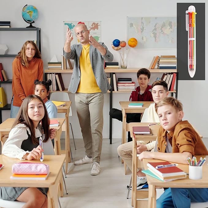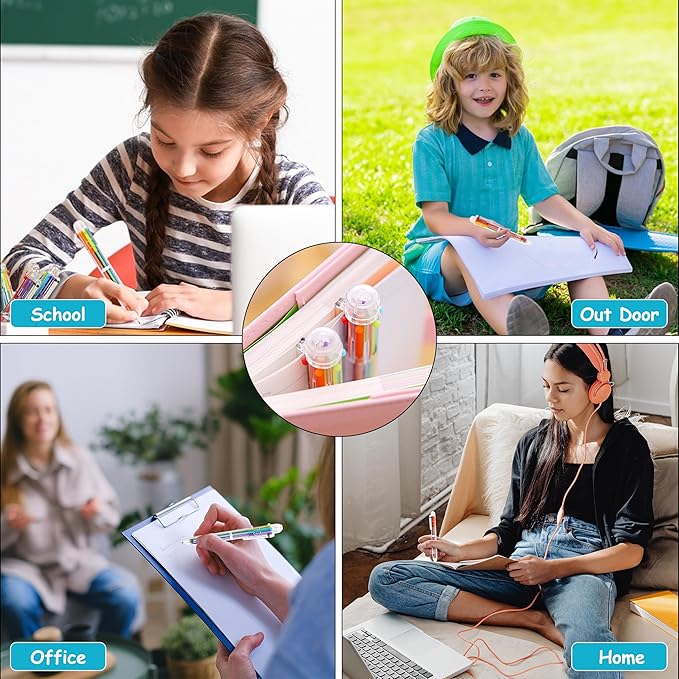 - 24 PACK 6-in-1 MULTICOLOR PEN:24 pcs multicolor ballpoint pens,Each contains six colors: black, blue, red, orange, green, and purple.Each color can be switched freely, which is both practical and interesting.
