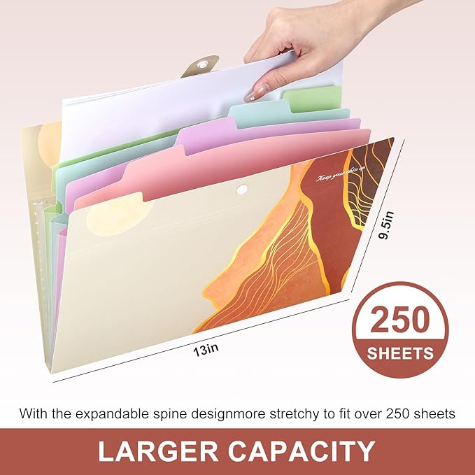 - 【Upgraded Spine for Larger Capacity】: This accordion folder with the expandable spine design is more stretchy to fit over 250 sheets without bulking up too much. Unlike regular spines that can easily get dented, our spine is made for quality and not easy to deform in transit