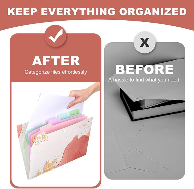 - 【Keep Organized Easily】: This expanding file folder makes sorting and organizing your papers a breeze. 5 pockets with tabs allow you to sort by subject or task, and colorful labels help you search and locate quickly