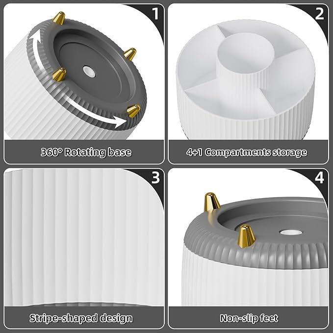 - 【Smart 360 Degree Revolving Design】: This desktop organizer can be turned up to 360-degree rotation to the left and right. This storage caddy allows you to keep all of your small items within reach while staying out of your way. You can always get what you want quickly and easily. The product can be bilaterally and smoothly rotated, just turn as you please
