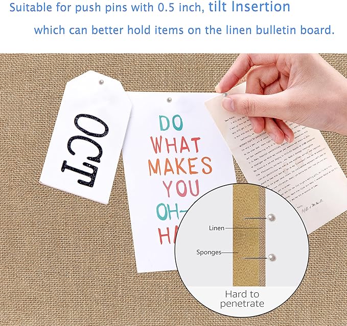 - This notice board has a very unique design. Featuring a fabric+ cork board design, it is very eye catching. Nails can be easily pinned to the board. You can use it again and again, yet your board will retain most of its pristine quality and appearance.