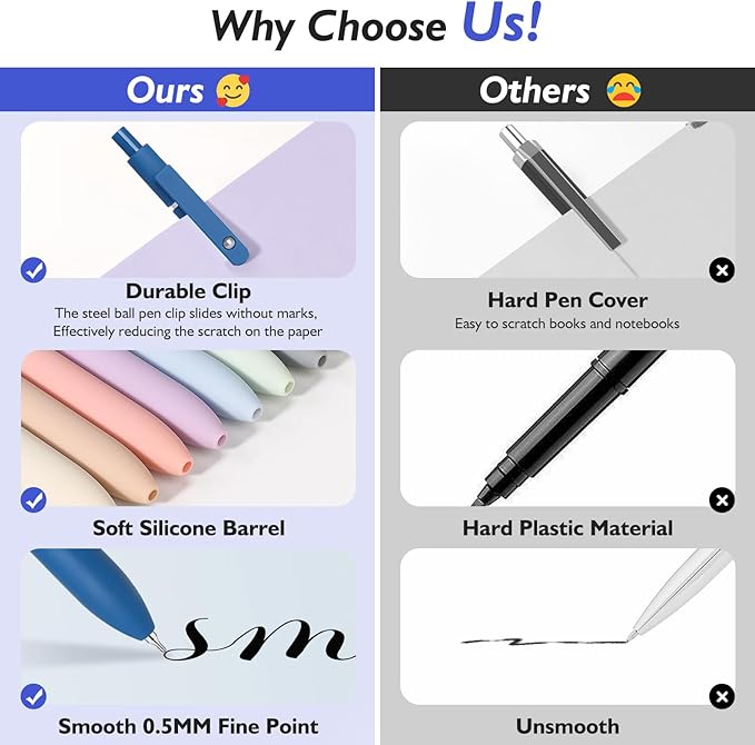 - 【Versatile Use】Whether you're at school, the office, or at home, our gel pens are ideal for all your writing needs, from taking notes, and filling out forms, to doodling, planning, and journaling, making them versatile and suitable for various tasks and projects, you only fasten it to a notebook, binder, or pocket easily. Soft silicone features grip brings a super soft touch feeling which makes each gel pen easy and comfortable to hold. Great for home school office supplies nursing supplies.