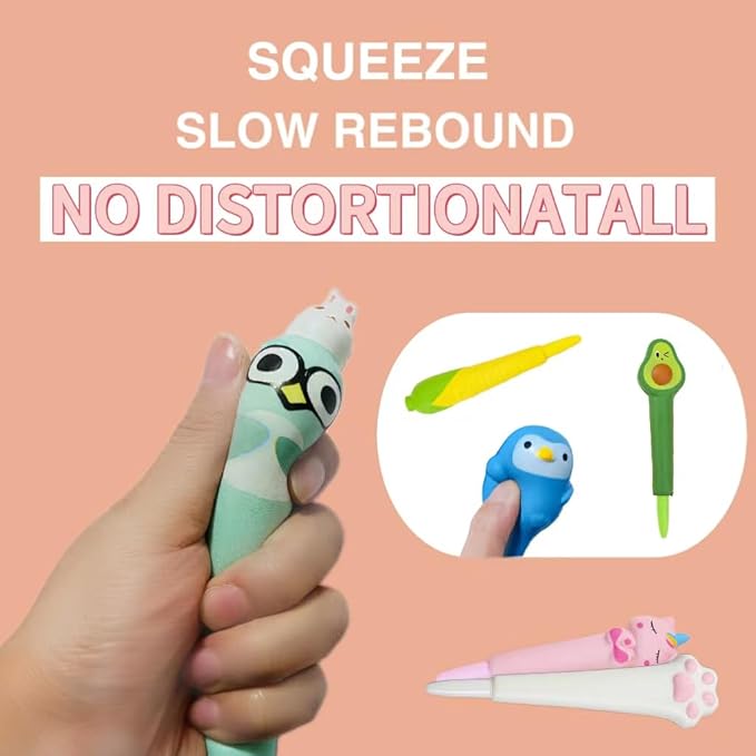- Stress Relieving: These fun pens aren't just cute, but also comfortable to hold and use.They can also help you reduce stress as you squeezeh and stretch them during breaks, the kawaii pen can easily return to its original shape even after repeated hard pressure; It feels comfortable when pressed, which can effectively relieve stress and anxiety during work or study.