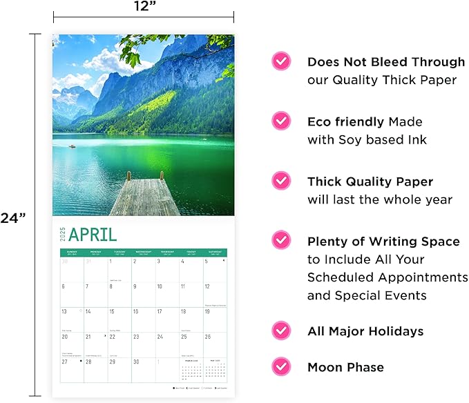 - High Quality : Wall Calendar Size Closed: 12 x 12 Inch. Opened: 12 x 24 Inch. Does not bleed through! 13 Full Color Images in our 2025 12 x 12 Wall Calendar. No compromises are made on image quality or content.