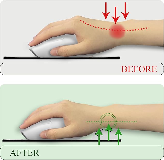 - Great Size and Thickness: With a size of 9.9" X 8.7", this gaming mouse pad fits all types of mice and computers. The 7mm thickness of the desk mouse pad provides optimal support for your wrist, reducing strain and discomfort. The 20mm wrist support adds extra cushioning for improved ergonomics