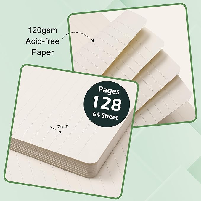 - PREMIUM THICK PAPER - 120 gsm lined paper, our notebook journal is made of high quality acid free paper to help prevent from damages of light and airs to keep notes on the pages clearly. There are 128 pages/64 sheets in this ruled journal, which provide you with plenty space for planning or scheduling.