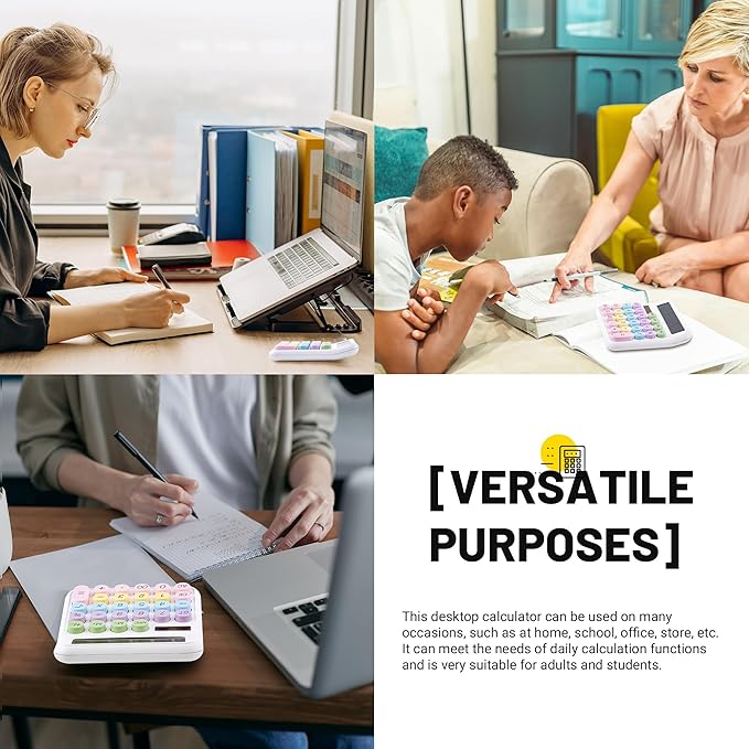 - [VERSATILE PURPOSES]This desktop calculator can be used on many occasions, such as at home, school, office, store, etc. It can meet the needs of daily calculation functions and is very suitable for adults and students.