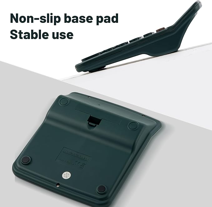 - [BIG BUTTONS]This dark green calculator features large, easy-to-use buttons that are light and comfortable to press, making your work a breeze.