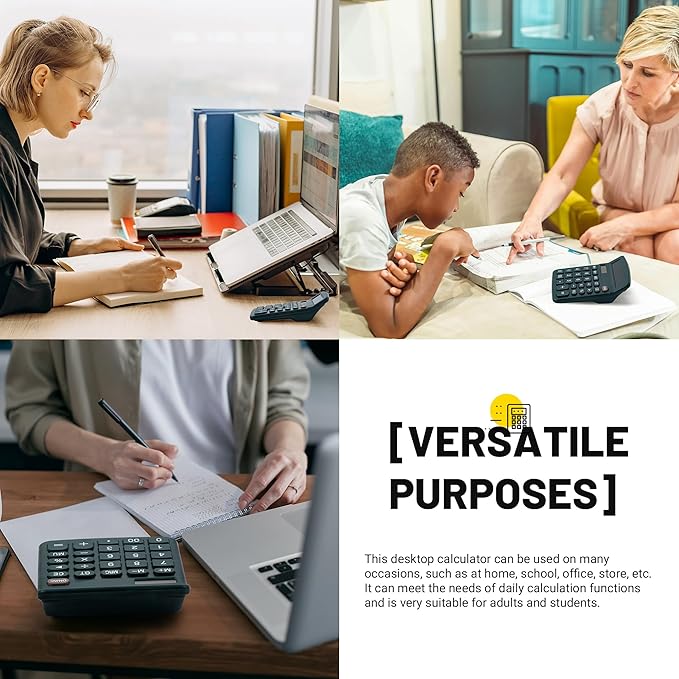- [VERSATILE PURPOSES]This desktop calculator can be used on many occasions, such as at home, school, office, store, etc. It can meet the needs of daily calculation functions and is very suitable for adults and students.