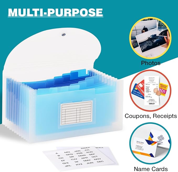 - Thirteen Pockets: Accordion folder is featuring thirteen pockets with a 6" expansion, that could stands up and expands fully on a desk or counter, contents are easy to access