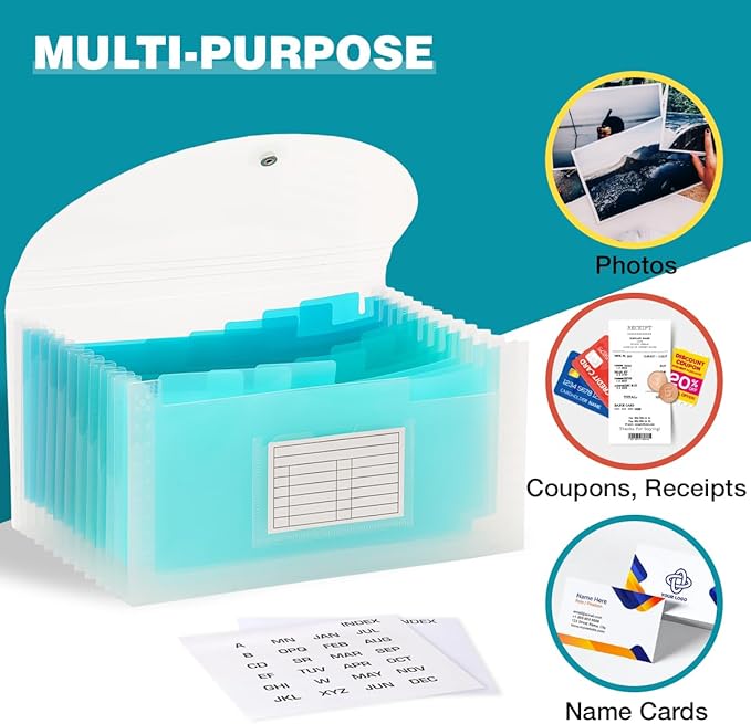 - Thirteen Pockets: Accordion folder is featuring thirteen pockets with a 6" expansion, that could stands up and expands fully on a desk or counter, contents are easy to access