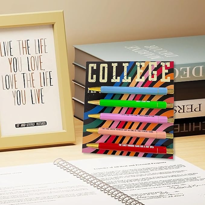 Funny pens,5-Count,Black Ink,Medium Nib 1.0mm,Funny Office Gifts for Coworkers,Personalized Pens Vibrant Funny Quotes Word Daily Pen (College Pens)