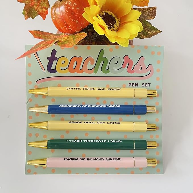 Funny pens,5-Count,Black Ink,Medium Nib 1.0mm,Funny Office Gifts for Coworkers,Personalized Pens Vibrant Funny Quotes Swear Word Daily Pen (Teacher Pens)