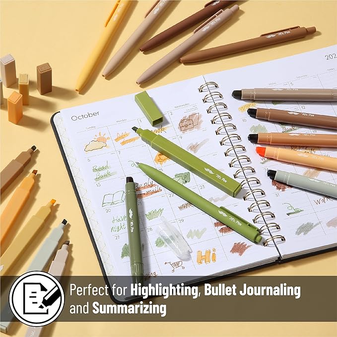 Mr. Pen Aesthetic Highlighters and Gel Pens, 18 Pack, Earth Tone and Vintage Color Bible Highlighter No Bleed