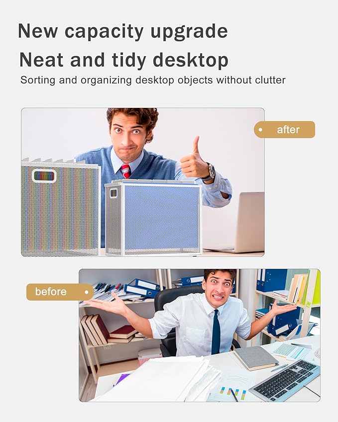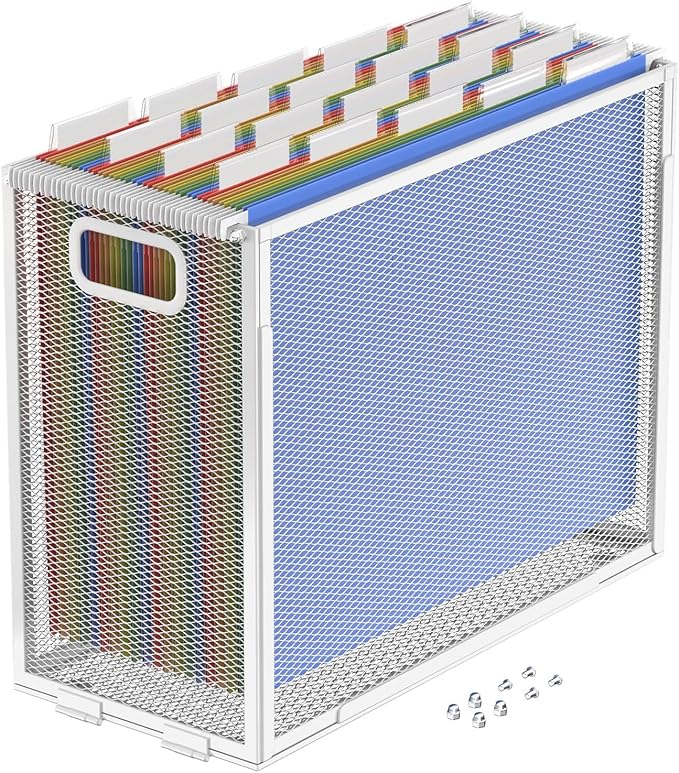 - [Material] The file folder organizer is made of steel and coated with paint. It is sturdy and durable, with smooth edges that won't hurt your hands. The bottom of the hanging file organizer has four soft silicone pads to protect your desktop.