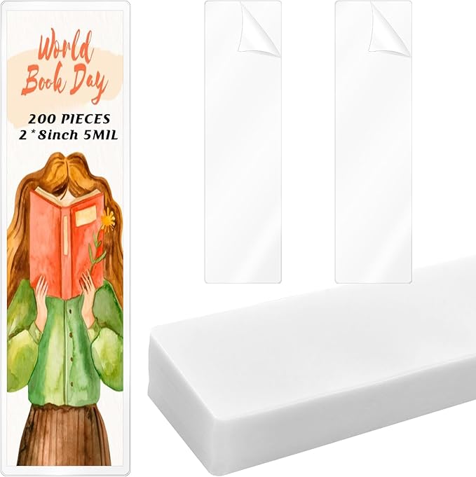 200Pieces Bookmark Laminating Pouches 2 * 8inch Hot Laminator Sleeves 5 Mil Compatible with Most Pouch Laminating Machines for Book Lovers Nature Lovers