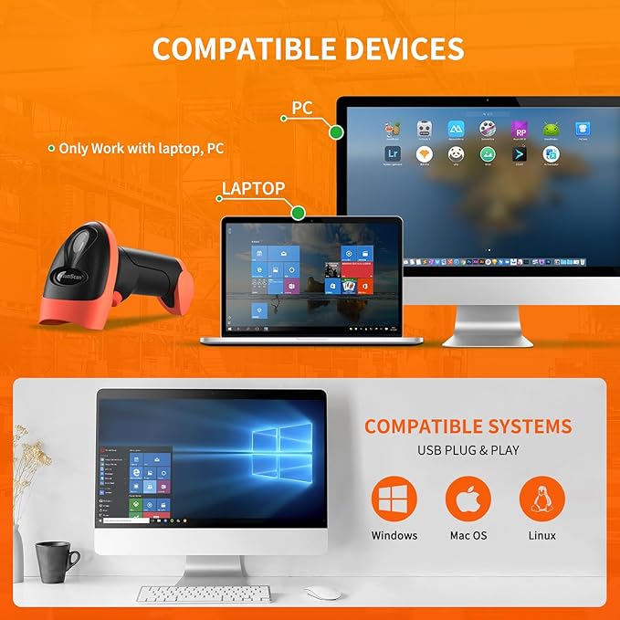 - ✨Plug and Play - Just plug into a standard USB port and start your scan, no drivers required, no battery; works with Windows, Linux and Mac OS systems. Works with Quickbook, Word, Excel, Novell, and all common software.