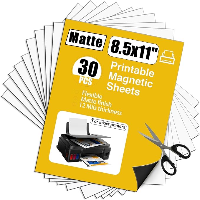 Printable Magnetic Sheets-30 Matte White Magnet Paper-Make fridge magnets, Personality Labels, Crafts-8.5" x 11",Magnet Photo Paper For Cut