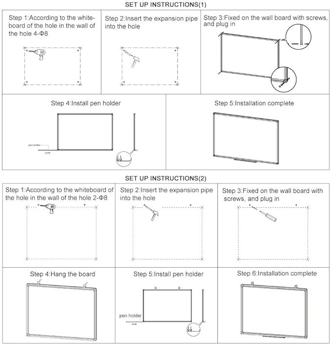 - 🌈Smooth and durable writing surface (precise size 48 x 24 inch): Magnetic dry eraser can easily erase writing marks and is not prone to bending bubbles. The silver aluminum alloy (never turning black) frame is made of Abs plastic corners, with no sharp or pointed edges