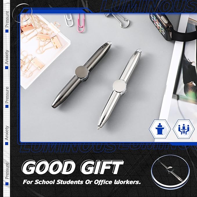 - Wide Applications: the LED light fidget pen can not only be applied as ordinary writing pens, mini flashlight and fun fidget pens, the 3-in-1 functional pens will give you endless fun, besides, they also can be applied as anxiety relief pens to release your working or study pressure, suitable for home, office and school, can be applied as nice gifts to send students, teachers, colleagues and more