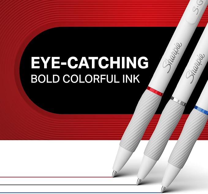 SHARPIE S-Gel, Gel Pens, Drawing Pens, Gel Ink Pens for Journaling, Writing Pens, Coloring Pens, Medium Point Pens (0.7mm), White Barrel, Assorted Ink Colors, 4 Count