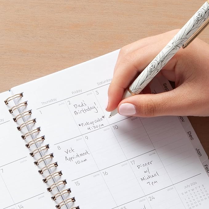 - Printed on high quality white paper for clean writing space, with premium quality covers in a beautiful floral pattern and durable, coated tabs that withstand constant use throughout the year