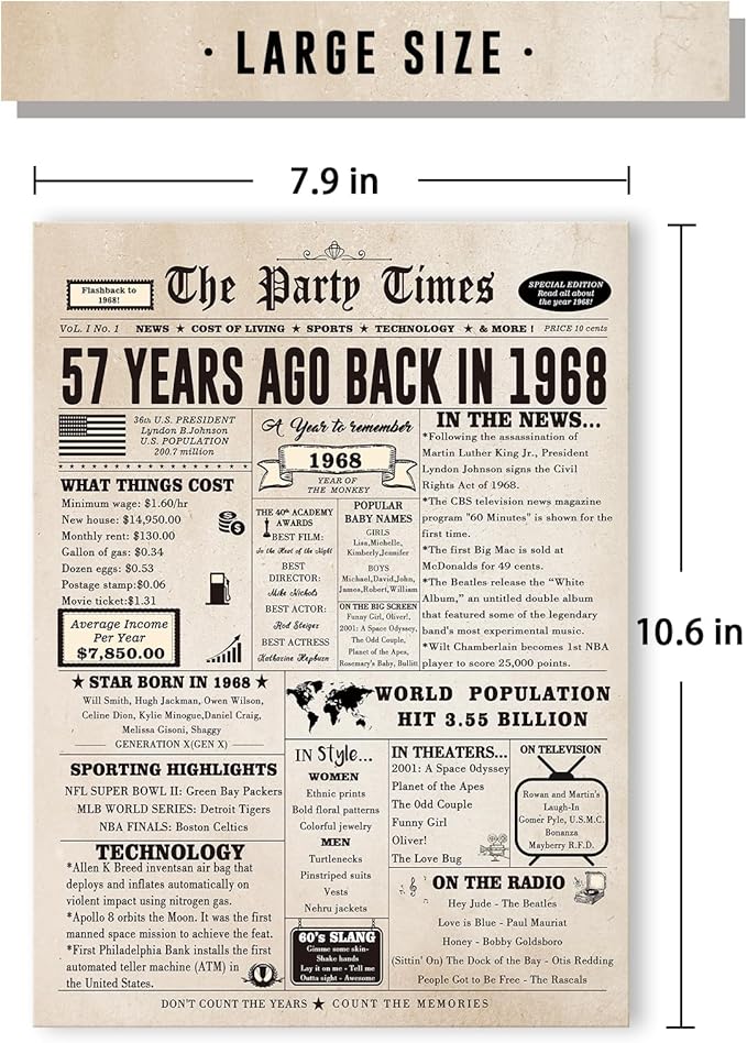 - 【58th Birthday Decorations for Women】This is a good topic. It's interesting to see how much everything cost back then, to see what happened back then.