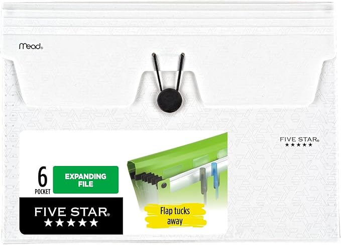 Five Star Expanding File Organizer, 6-Pocket Accordian File Organizer, Bungee Closure, Holds 11" x 8-1/2", White (350100E-ECM)