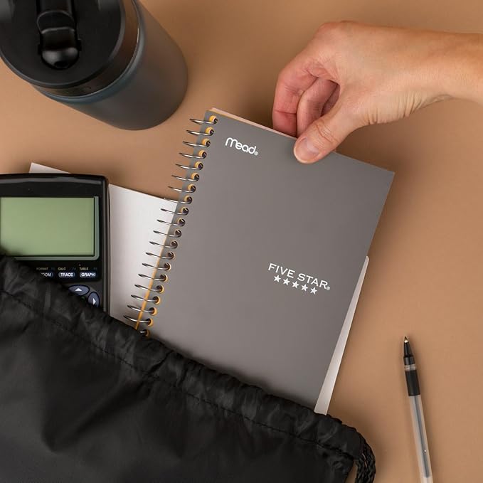Five Star Spiral Notebook, 1 Subject, College Ruled Paper, Personal Size - 7" x 4-3/8", 80 Sheets, Gray (450048AA3-ECM) (Packaging May Vary)