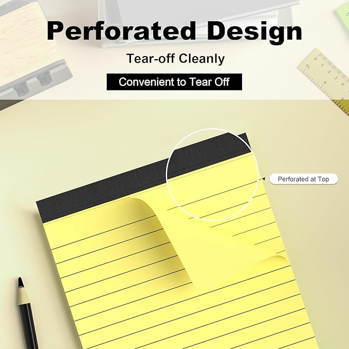 - [Package Contain] Each package contains 6 pack of small notepads measuring 4x6 inch. The paper is college ruled with 9/32 inch lined spacing. These yellow legal note pads are ideal for jotting down notes, memo and lists. The package provides sufficient quantity to meet your daily usage and replacement needs, so you don't have to worry about running out of paper. The writing pad is perfect for recording all your things, ensuring that nothing is forgotten.