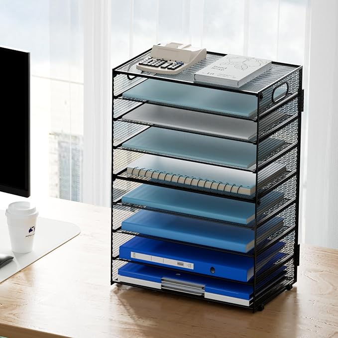 Marbrasse Paper Organizer Letter Tray, 9 Tier Mesh File Organizer with Handle, Paper Sorter Desk Organizer for Home Office Supplies