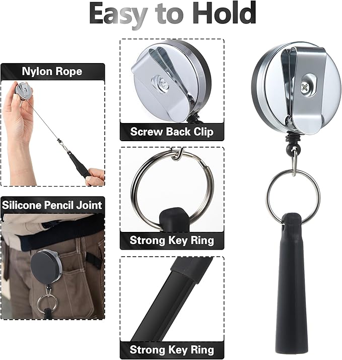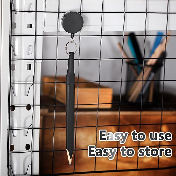 - Retractable Pen Holder: this pencil holder is designed with a silicone pen cover, just wear the metal clip on your apron or belt loop, and insert your marker into the rubber joint; The pencil holder is connected with 24 inch retractable cord, convenient to mark in the messy woodworking workplace and improve your work efficiency